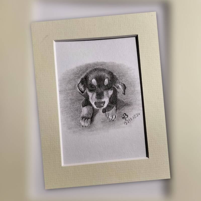 " Leo, die magische Seelenhündin" 2025, Bleistift/Kohle, Geschenk für einen wichtigen Menschen, aus der Erinnerung einer wichtigen Zeit in meinem Leben.